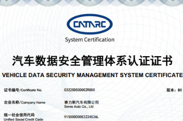 安全守護(hù)再進(jìn)化 賽力斯獲全國首批汽車數(shù)據(jù)安全管理體系認(rèn)證證書