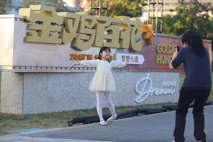 游客在“金鸡百花梦想大道”上拍照游玩。新华社发(曾德猛摄)
