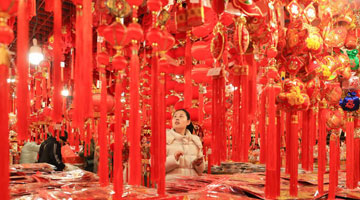 春节将至,各地群众选购节庆饰品和年货,迎接新春佳节的到来。