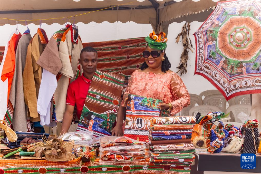 2月27日,在喀麦隆西南大区首府布埃亚,商贩在西南文化节上展示传统产品。