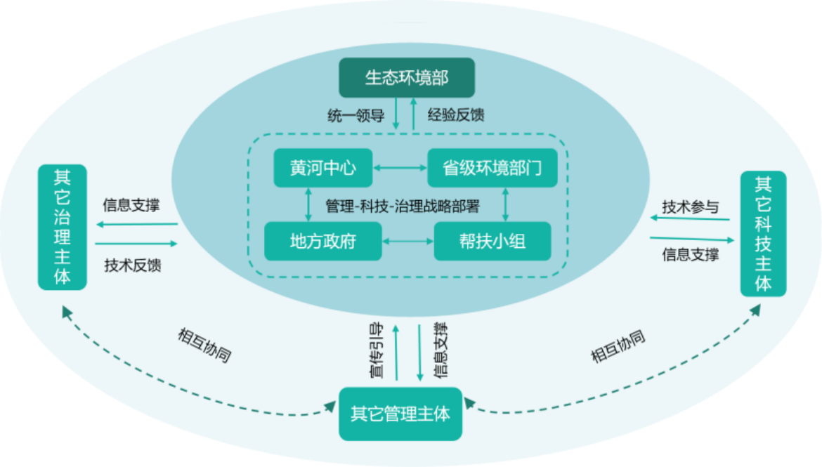 针对多元主体协同难题,项目对青海省海东市、西宁市等黄河流域典型城市开展深度调研,从治理能力、治理理念、治理手段、治理角色四个维度全面识别关键短板:治理能力上,环境基础设施滞后、跨区域联合治理协调困难、专业人才储备不足;治理理念上,“生态为民”落实不到位;治理手段上,科技成果转化机制不成熟、数字化建设碎片化;治理角色上,社会力量参与度不高。基于此,团队构建了“管理-科技-治理”三方协同模型,解析了中央政府、地方政府、驻点帮扶工作组等各方的互动关系。提出明确的多元主体协同的具体方案:以绩效补贴和多元考核引导地方落实科技成果;以激励机制和技术规范激发科研机构创新活力;以互评机制和迭代优化推动产学研深度融合。同时,建议强化社会组织、企业、公众的监督参与,形成“政府主导、科技支撑、社会协同”的流域治理新格局。