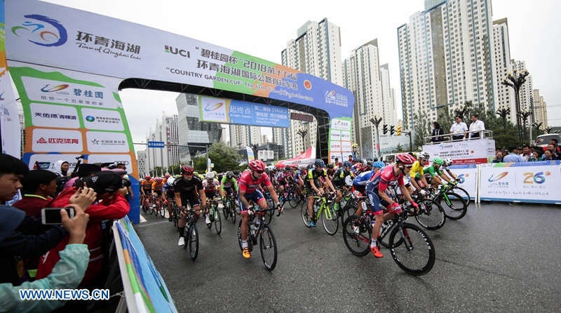 Cyclists compete in the second stage of the Tour of Qinghai Lake in northwest China's Qinghai Province, on July 23, 2018. (Xinhuanet Photo by Jia Haiyuan)
