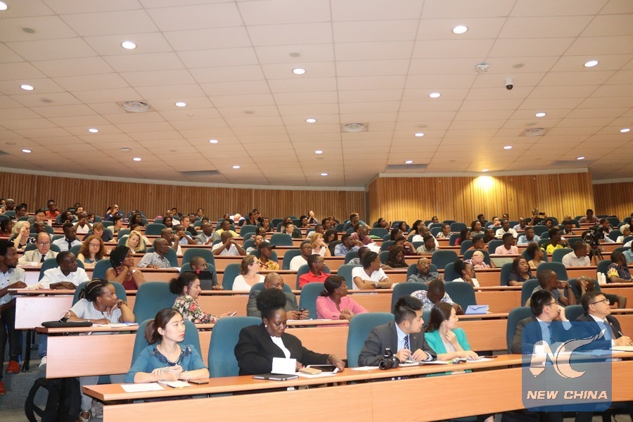 Participants follow proceedings during the fourth annual Theo Ben-Gurirab lecture series at the Namibia University of Science and Technology in Windhoek, capital of Namibia, Feb. 28, 2019. Implementation of the outcomes of the 2018 Beijing Summit of the Forum on China-Africa Cooperation (FOCAC) has already started in different parts of the African continent, Charge d'affaires of the Chinese Embassy in Namibia said on Thursday. (Xinhua/Tirivangani Masawi)