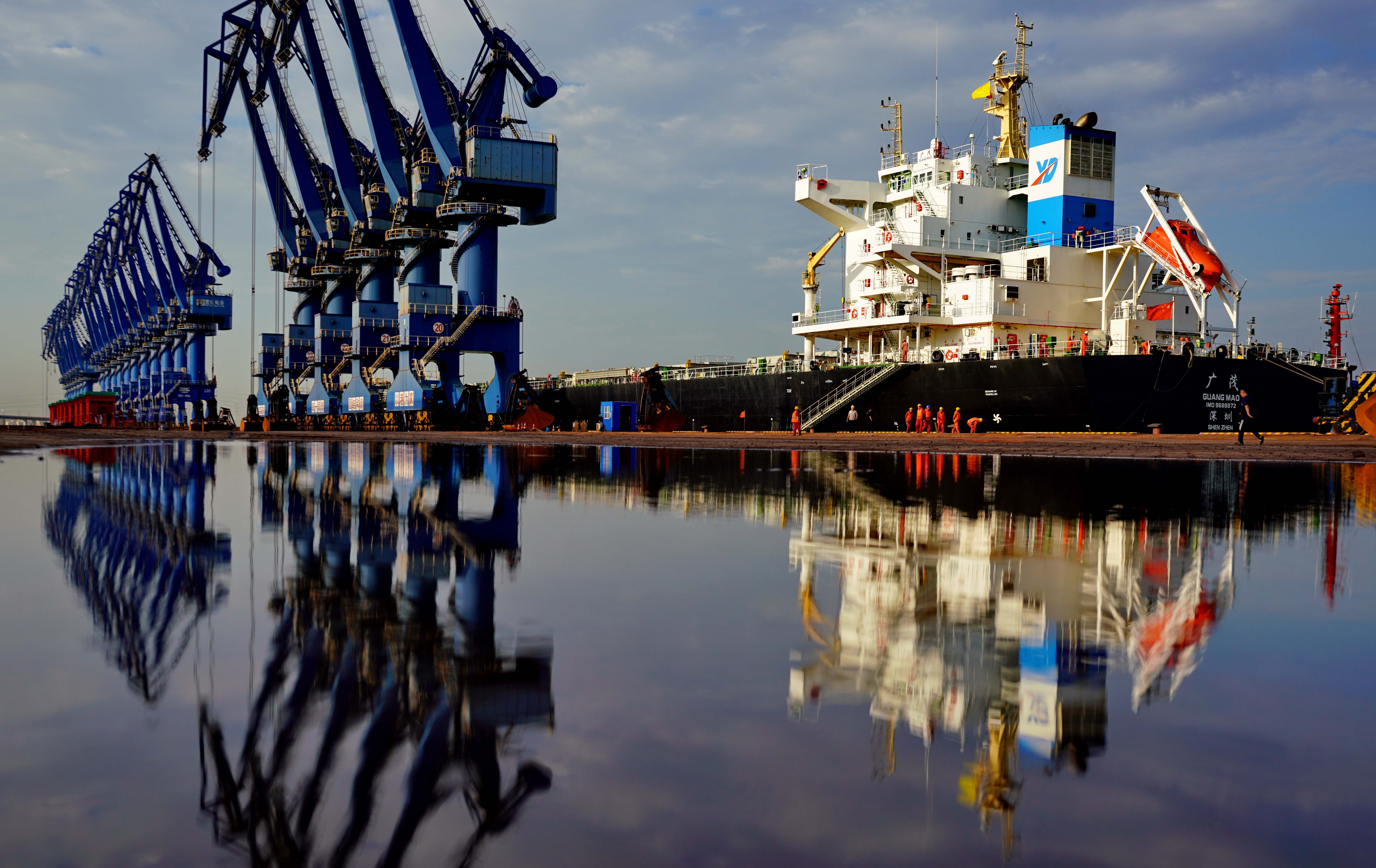 A ship at a wharf of Caofeidian port area in Tangshan, north China's Hebei Province, on Aug. 14, 2019. (Xinhua/Yang Shiyao)