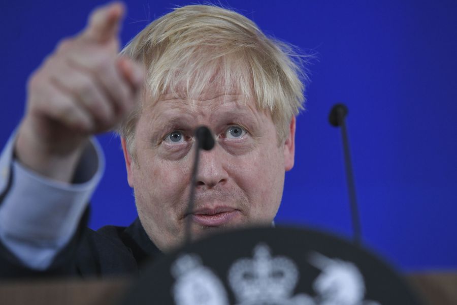 British Prime Minister Boris Johnson attends a press conference during an EU summit in Brussels, Belgium, on Oct. 17, 2019. (Photo by Riccardo Pareggiani/Xinhua)