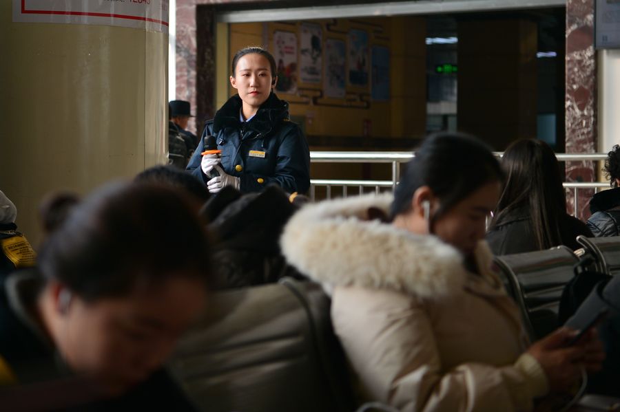As the Spring Festival travel rush is approaching, attendants like Yang Chenxue are getting busier. Their duties include checking passengers in, inspecting the waiting room and helping passengers in need.