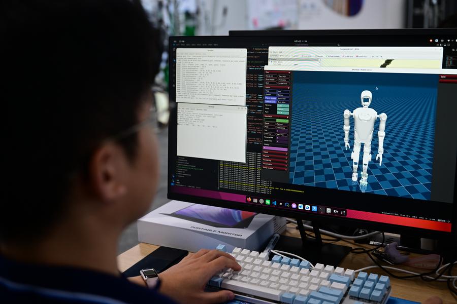 An engineer runs a simulation program at Leju Robotics in Hefei, east China's Anhui Province, Oct. 24, 2025. (Xinhua/Zhou Mu)