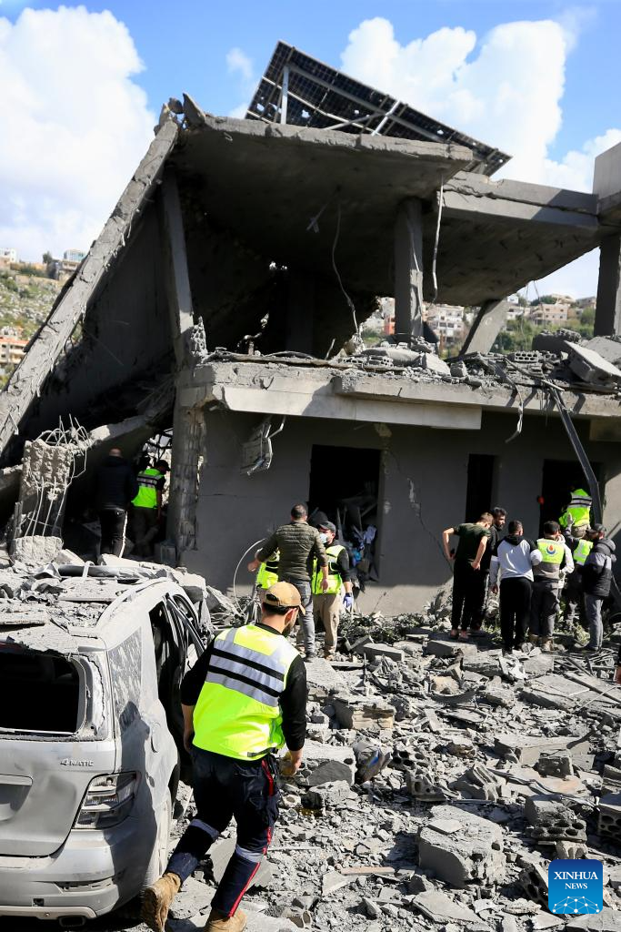 An Israeli airstrike on the town of Saksakiyeh in the Sidon district killed four people and injured eight others. (Photo by Ali Hashisho/Xinhua)