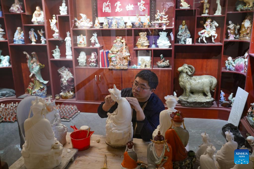 Zeng Rui, 36, is a fourth-generation inheritor of the family legacy. In 2011, he returned home to study ceramics under his father, mastering various sculpturing techniques. After the "Speechless Buddha" went viral in 2023, he set up a studio to recreate the original work and develop cultural and creative products inspired by it. For Zeng Rui, tradition is the foundation. By preserving classic themes and techniques while reinterpreting them for a contemporary audience, time-honored art can be revitalized. (Xinhua/Zhou Mi)