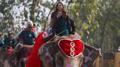 Snow-covered Mt. Gangshika in China's Qinghai attracts tourists in winter