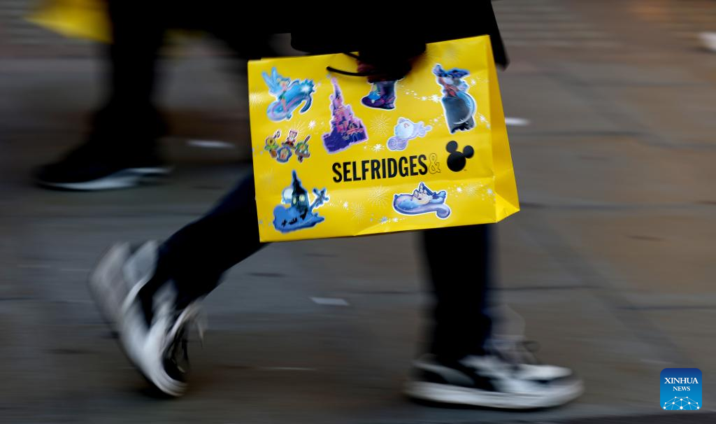 A shopper's bag is seen on Oxford Street during Boxing Day sales in London, Britain, on Dec. 26, 2025. (Xinhua/Li Ying)