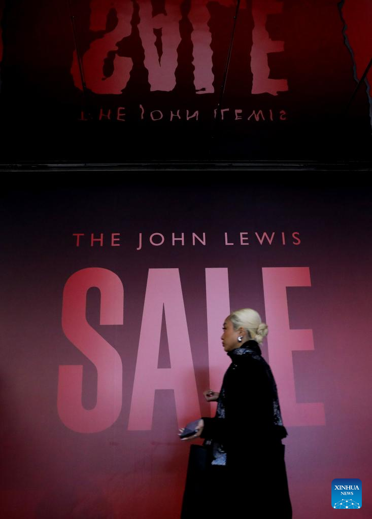 A man walks past a sale sign on Oxford Street during Boxing Day sales in London, Britain, on Dec. 26, 2025. (Xinhua/Li Ying)