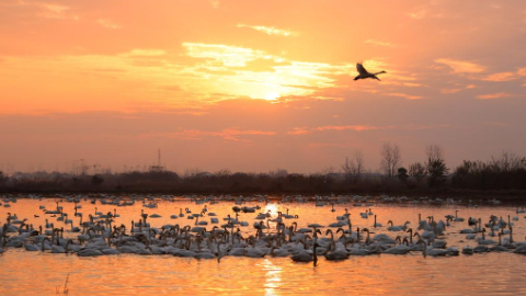 Migratory birds seen at Donggu Lake in Hunan, C China