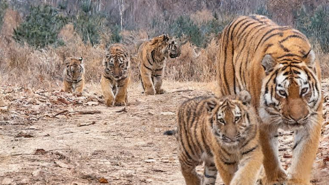 China reports its first sighting of wild Siberian tiger quintuplets