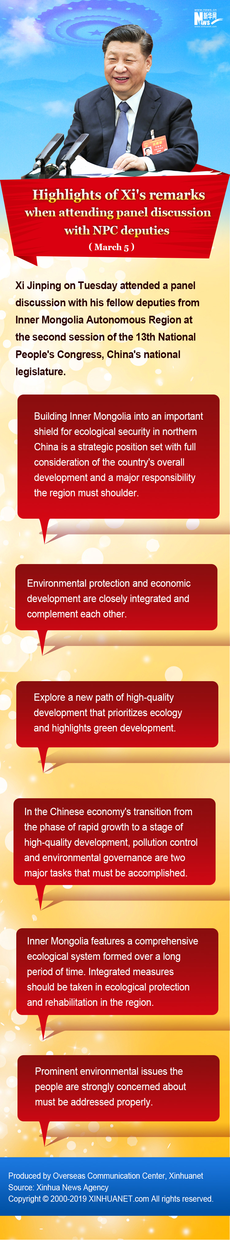 Infographic: Highlights of Xi's remarks when attending panel discussion with NPC deputies (March 5)