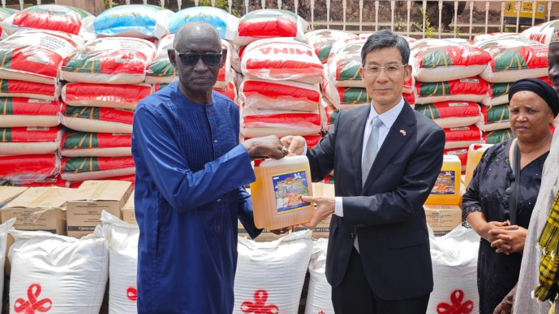 The Chinese Embassy in Guinea-Bissau has held a donation ceremony in the city of Bafata, in Bafata Region, to provide humanitarian aid to people affected by a fire. Chinese Ambassador to Guinea-Bissau Yang Renhuo and Bafata Region Governor Mustafa Cassama on Wednesday attended the ceremony and jointly distributed the donation to representatives of the victims.