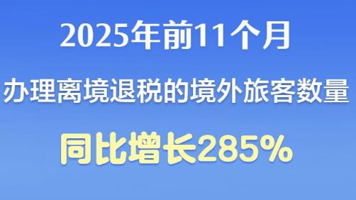 前11個(gè)月辦理離境退稅的境外旅客數(shù)量同比增長(zhǎng)285%