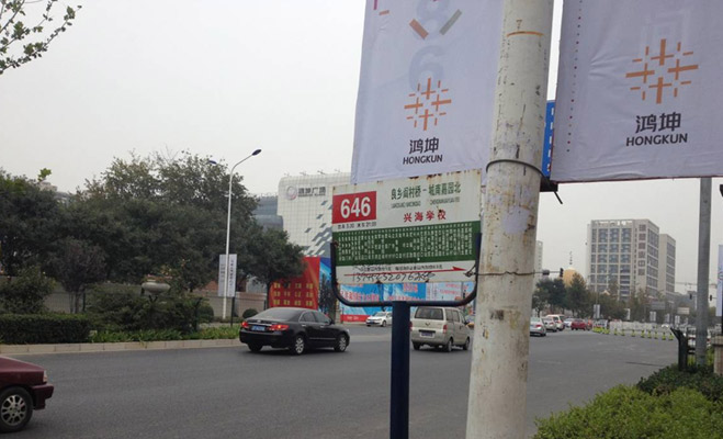 大約走了10分鐘,見(jiàn)到有少量公交車(chē)經(jīng)過(guò),串聯(lián)附近小區(qū)和商圈?!叭バ^(qū)最好走著或騎自行車(chē),等公共汽車(chē)要等挺長(zhǎng)時(shí)間的?!痹诠卉?chē)站,一位附近小區(qū)的居民表示。