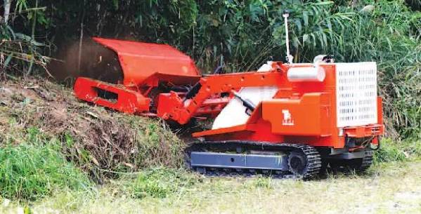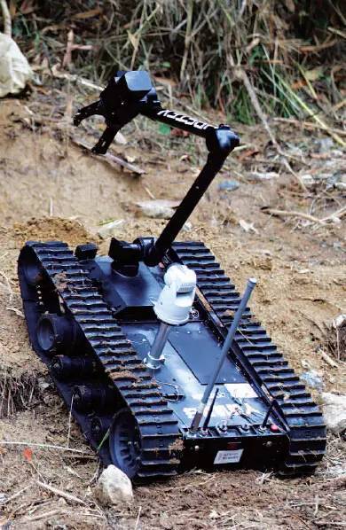 雷場清障車,是通過遙控操作的。具有在坡度小于40°的山地進(jìn)行清障排爆作業(yè)的功能。該車具有較強(qiáng)的爬坡能力,操作手可以在1000米范圍內(nèi)實施無線遙控控制,完成掃除淺層防步兵地雷、清除灌木叢和鏟運樹木等任務(wù),以電錘擊爆地雷手雷等未爆炸物品,這期間即使產(chǎn)生爆破碎片或者沖擊波都不會對操作員構(gòu)成危險。