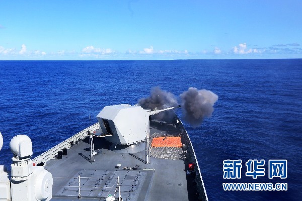 “嘭嘭嘭——”率先開火的是長沙艦。不到一分鐘后,??谂炓查_始了射擊。此起彼伏的炮聲,讓平靜的大洋瞬間彌漫著硝煙的味道。