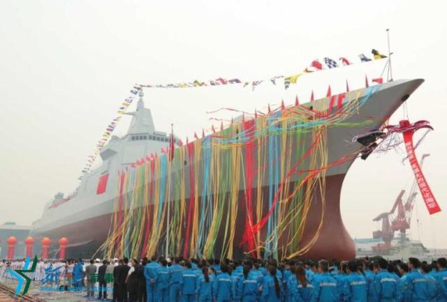 中國海軍新型驅(qū)逐艦首艦下水儀式28日上午在上海江南造船(集團(tuán))有限責(zé)任公司舉行。這型驅(qū)逐艦是我國完全自主研制的新型萬噸級(jí)驅(qū)逐艦,先后突破了大型艦艇總體設(shè)計(jì)、信息集成、總裝建造等一系列關(guān)鍵技術(shù),裝備有新型防空、反導(dǎo)、反艦、反潛武器,具有較強(qiáng)的信息感知、防空反導(dǎo)和對(duì)海打擊能力,是海軍實(shí)現(xiàn)戰(zhàn)略轉(zhuǎn)型發(fā)展的標(biāo)志性戰(zhàn)艦。尹航 攝