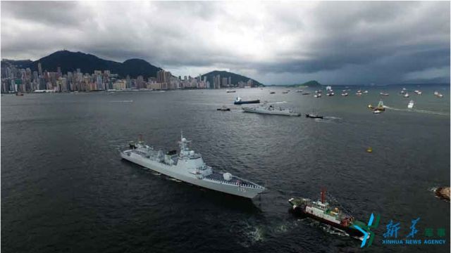 ↑7月7日,海軍濟南艦駛?cè)胂愀郯捍薮a頭。新華社記者 曾濤 攝