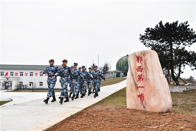 官兵正在營區(qū)內(nèi)走隊列。有“鄂西第一哨”之稱的巴東雷達站位于鄂西將軍山山頂,海拔近2000米。高義文 攝