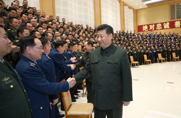 ??? 2月12日,中共中央總書記、國家主席、中央軍委主席習(xí)近平在成都親切接見駐蓉部隊(duì)師以上領(lǐng)導(dǎo)干部和建制團(tuán)單位主官。新華社記者李剛攝