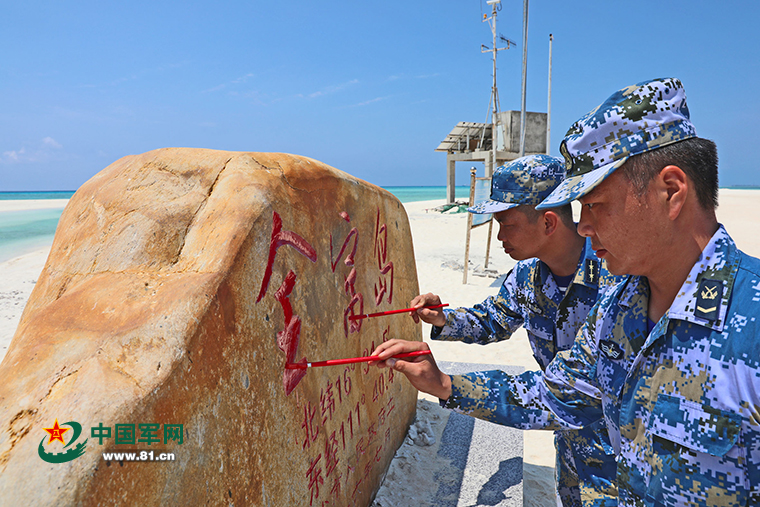 在全富島,關(guān)建軍和三沙市副市長陳儒茂帶頭描摹主權(quán)碑上“中國”兩個大字?!懊棵枰还P,都感到神圣無比,建設(shè)強大穩(wěn)固的現(xiàn)代邊??辗溃餐刈o(hù)好我們的祖宗海,離不開軍地協(xié)力??钙疬@一如山使命,我們責(zé)無旁貸!”關(guān)建軍的話語擲地有聲。特約記者 薛成清 通訊員 盆世舟 潘新新