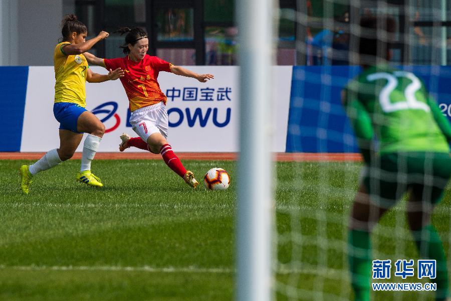 10月24日,中國隊(duì)球員劉艷秋(中)在比賽中突破傳球。 當(dāng)日,在武漢舉行的第七屆世界軍人運(yùn)動(dòng)會(huì)女子足球半決賽中,中國隊(duì)以2比1戰(zhàn)勝巴西隊(duì),晉級決賽。 新華社記者劉金海攝