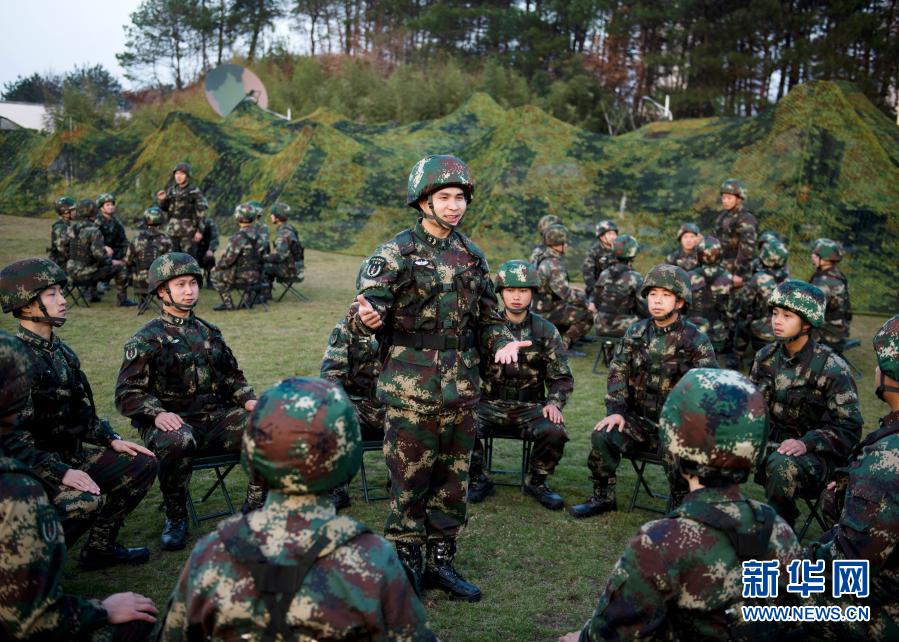 演訓間隙,俞細文在野外訓練場組織理論宣講(12月11日攝)。新華社發(fā)(劉明松 攝)