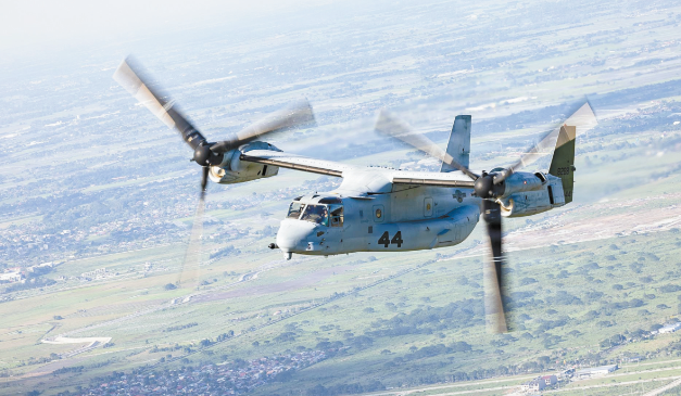 旋翼转向水平时,“鱼鹰”倾转旋翼机可以高速飞行。