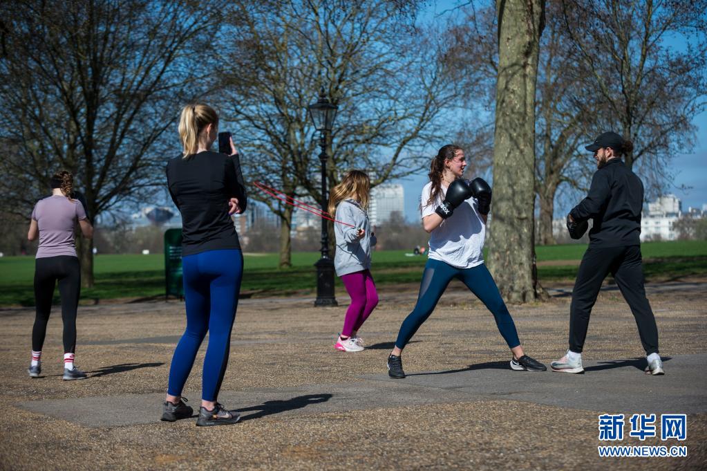 3月29日,人們在英國倫敦海德公園進(jìn)行戶外拳擊練習(xí)。