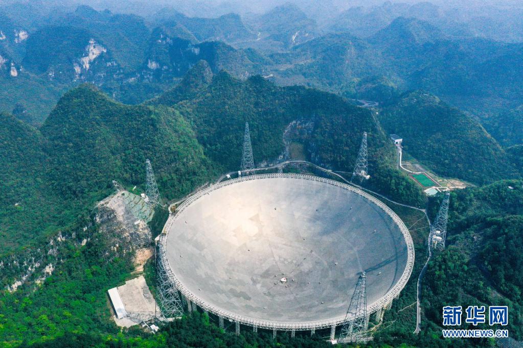 在貴州省平塘縣,被譽為“中國天眼”的500米口徑球面射電望遠(yuǎn)鏡(FAST)在群山中仰望星空,探求著宇宙奧秘。
