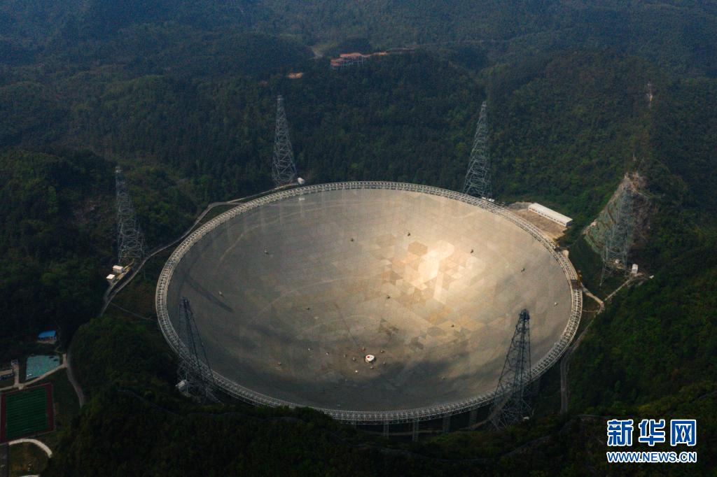 在貴州省平塘縣,被譽為“中國天眼”的500米口徑球面射電望遠鏡(FAST)在群山中仰望星空,探求著宇宙奧秘。