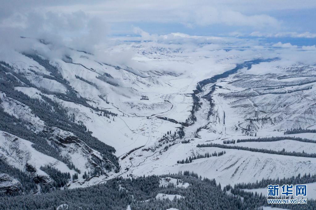 當(dāng)日,一場(chǎng)春雪過(guò)后,新疆沙灣市南部的天山山脈一片銀裝素裹。蒼山覆雪、云霧繚繞,如同一幅幅水墨畫(huà)般動(dòng)人。