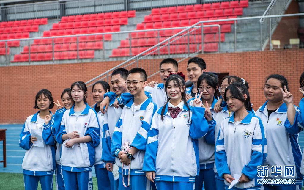 6月9日,烏當中學高三學生在操場上拍照留念。
