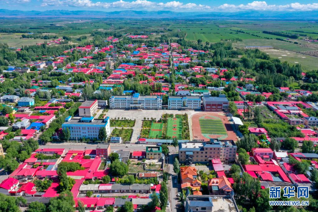 這是杜寶柱任教的新疆塔城地區(qū)塔城市第二小學(6月12日攝,無人機照片)。