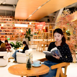 12月25日,在威海市新华书店“至海空间”,市民在看书。