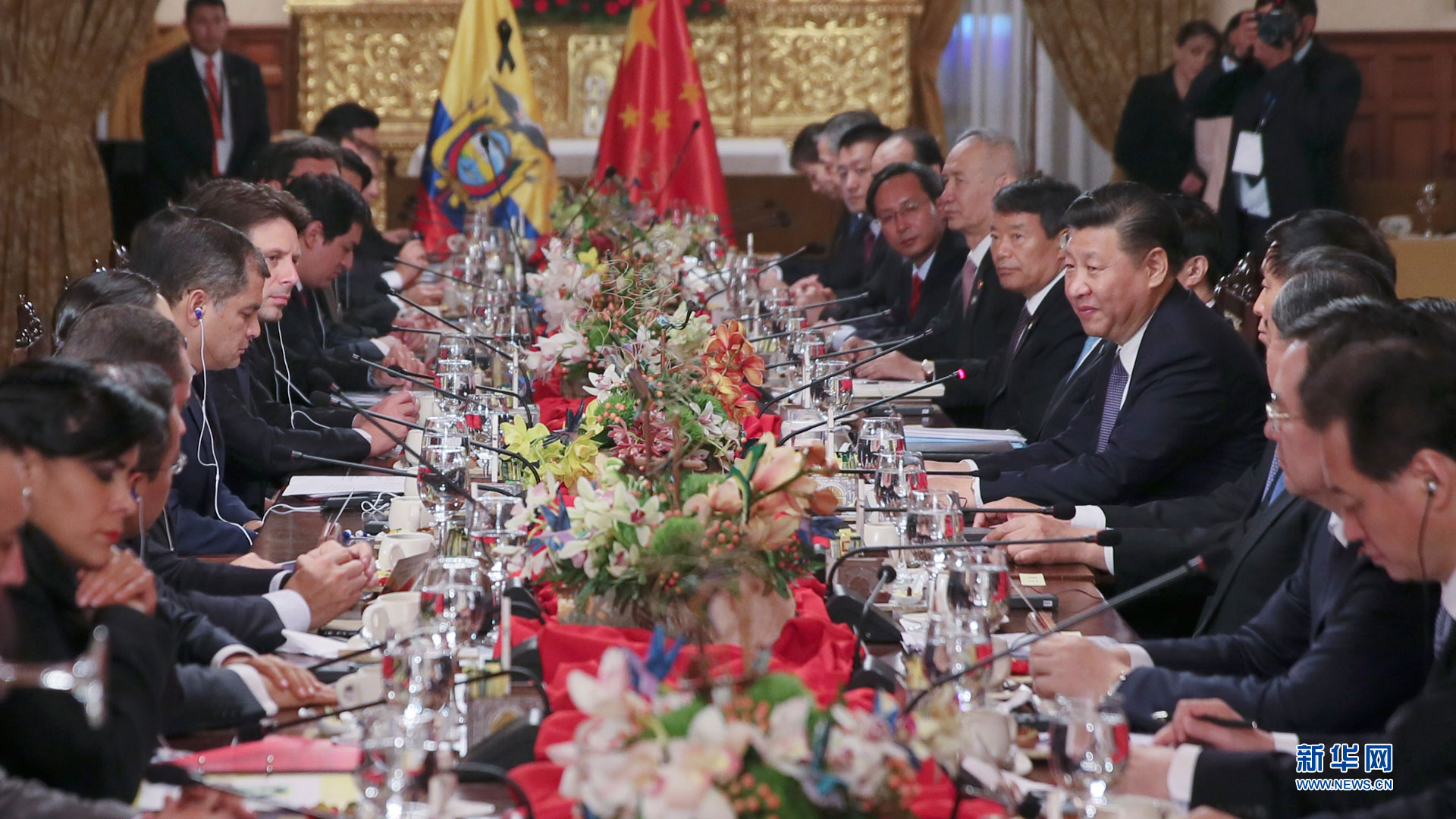 當?shù)貢r間11月17日,國家主席習近平在基多同厄瓜多爾總統(tǒng)科雷亞舉行會談。 新華社記者 蘭紅光 攝2016-11-18