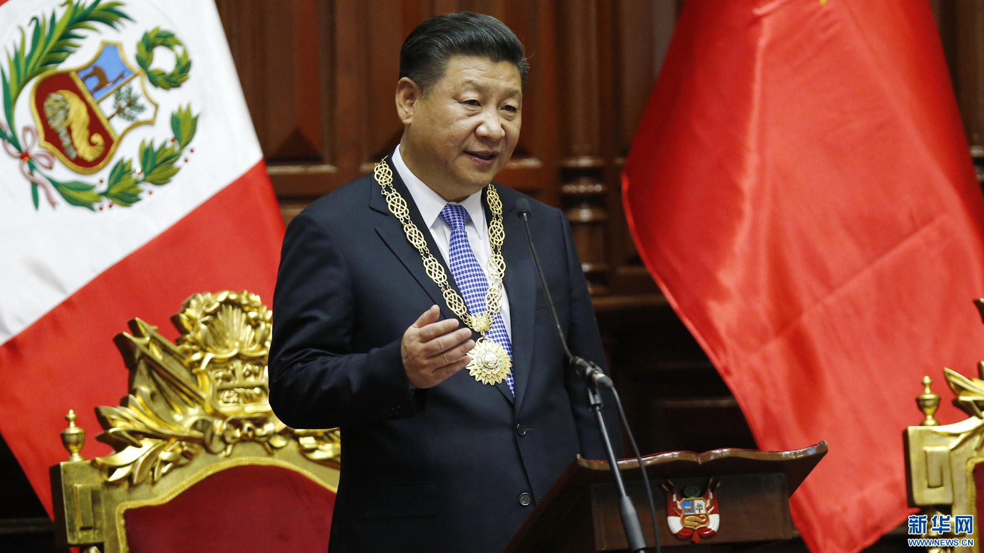 11月21日,國家主席習近平在秘魯國會發(fā)表題為《同舟共濟、揚帆遠航,共創(chuàng)中拉關(guān)系美好未來》的重要演講。 新華社記者 鞠鵬 攝2016-11-22
