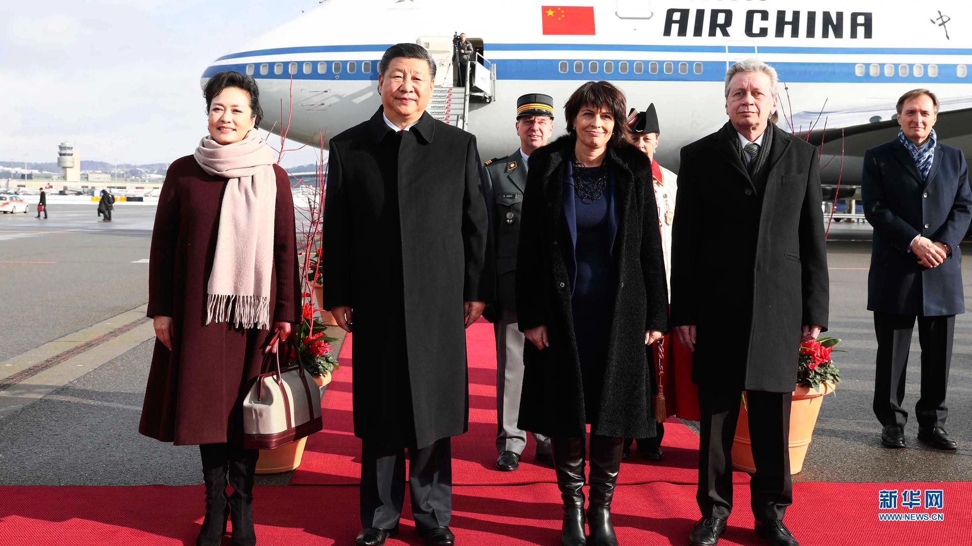 1月15日,國(guó)家主席習(xí)近平乘專機(jī)抵達(dá)蘇黎世,開(kāi)始對(duì)瑞士聯(lián)邦進(jìn)行國(guó)事訪問(wèn)。這是瑞士聯(lián)邦主席洛伊特哈德在機(jī)場(chǎng)為習(xí)近平和夫人彭麗媛舉行隆重歡迎儀式。新華社記者蘭紅光攝2017-01-16