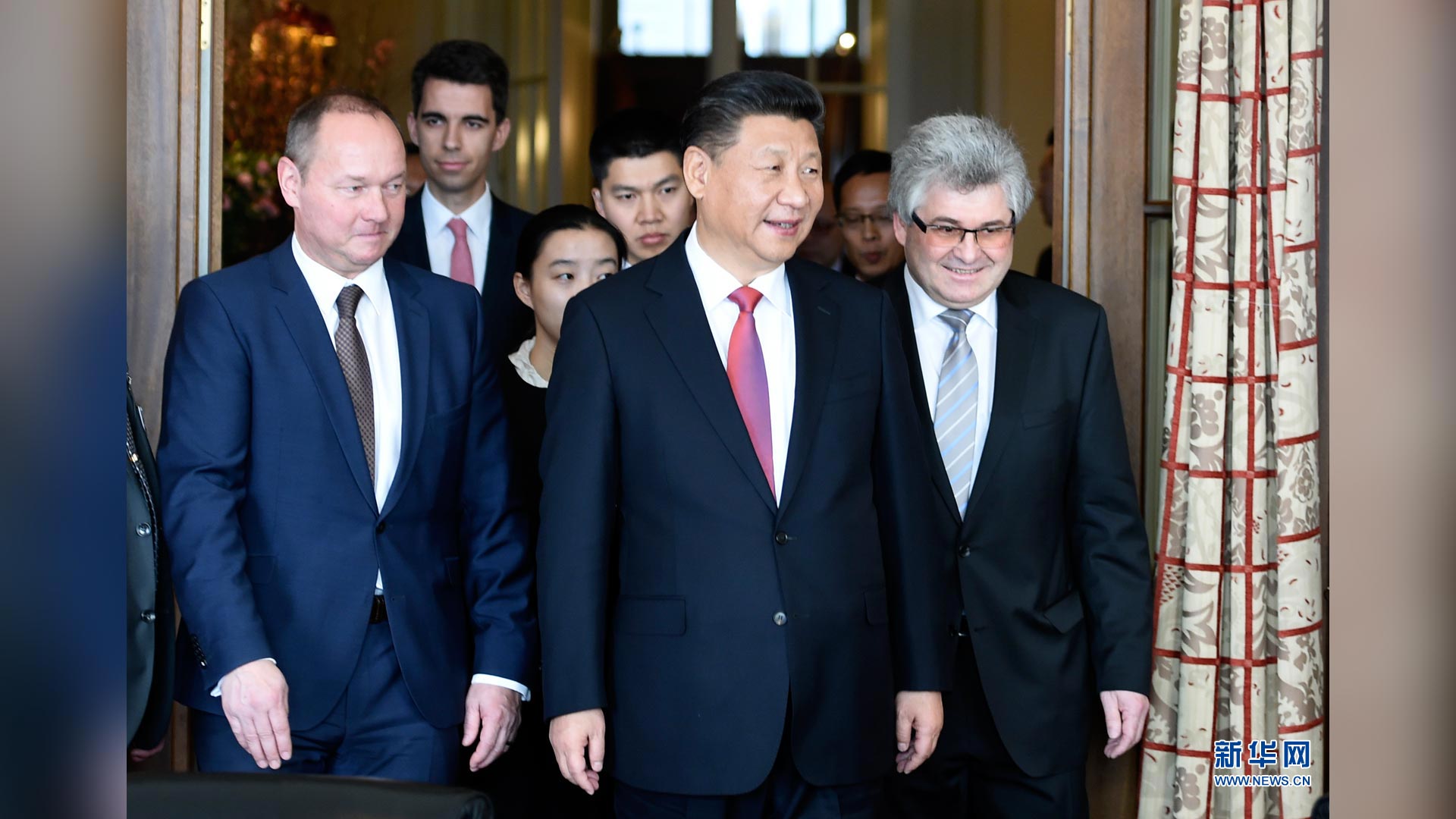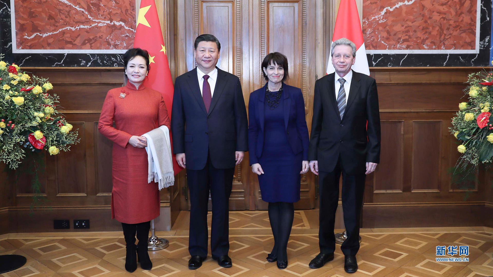 1月16日,國(guó)家主席習(xí)近平在伯爾尼會(huì)見(jiàn)瑞士聯(lián)邦國(guó)民院議長(zhǎng)施塔爾和聯(lián)邦院議長(zhǎng)比紹夫貝爾格。 新華社記者 張鐸 攝2017-01-17
