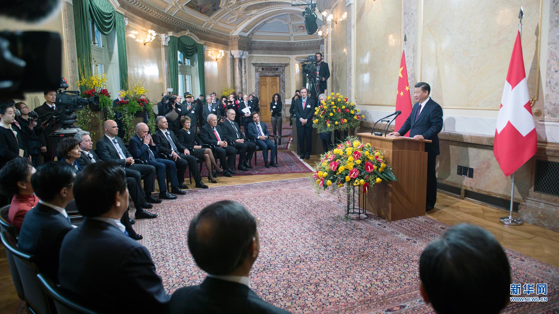 1月16日,國(guó)家主席習(xí)近平在伯爾尼同瑞士聯(lián)邦主席洛伊特哈德共同會(huì)見(jiàn)瑞士經(jīng)濟(jì)界代表。新華社記者 李學(xué)仁 攝2017-01-17