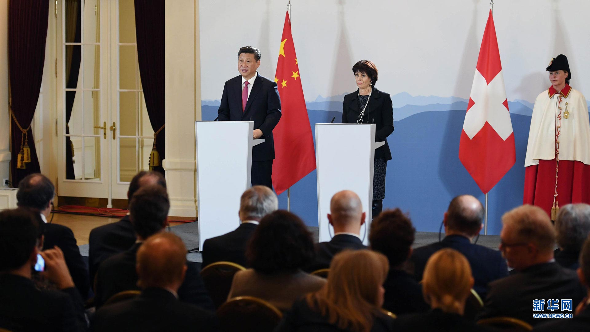 1月16日,國(guó)家主席習(xí)近平在伯爾尼同瑞士聯(lián)邦主席洛伊特哈德舉行會(huì)談。這是會(huì)談后,兩國(guó)元首共同會(huì)見(jiàn)記者。新華社記者 饒愛(ài)民 攝2017-01-17