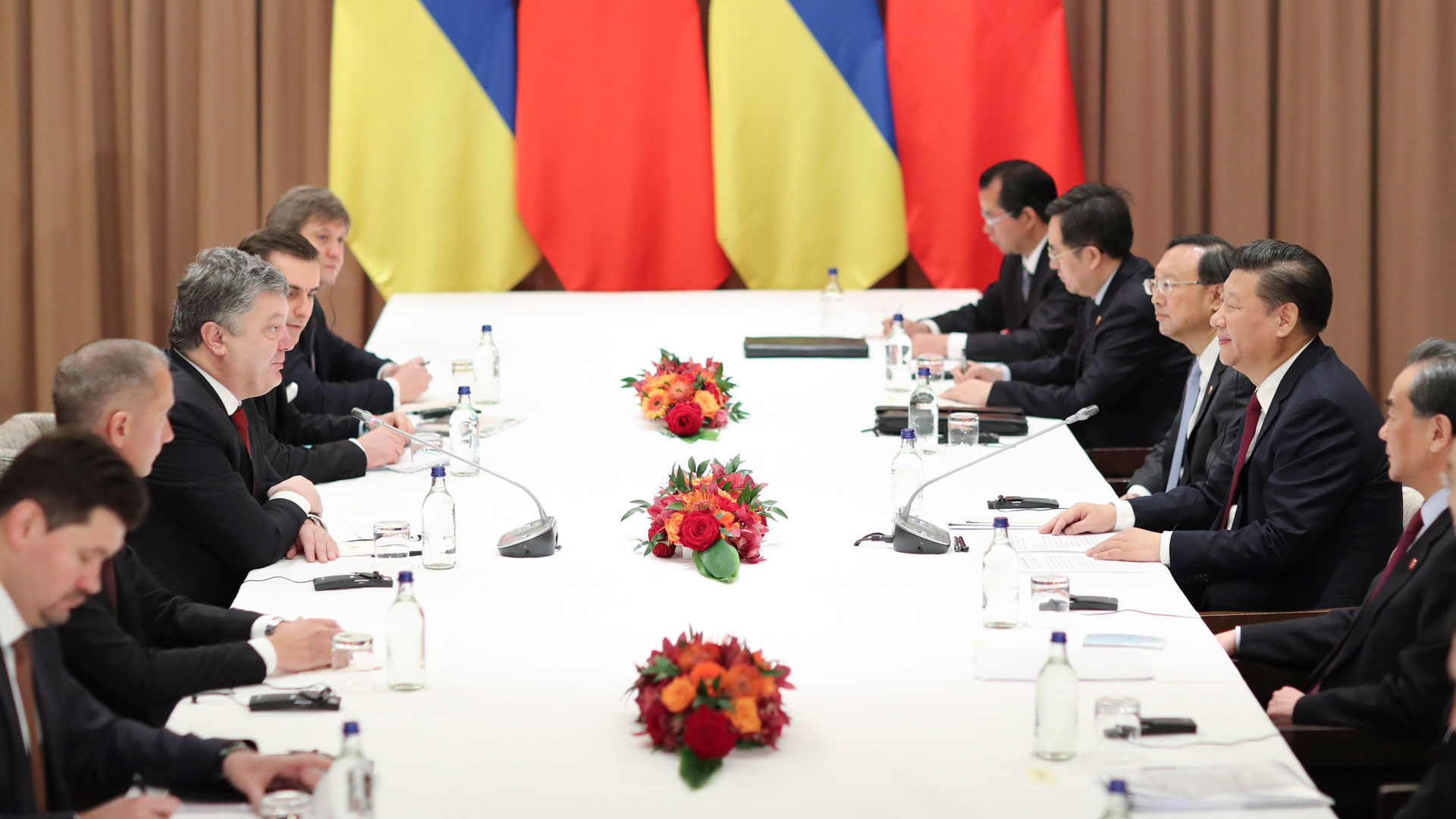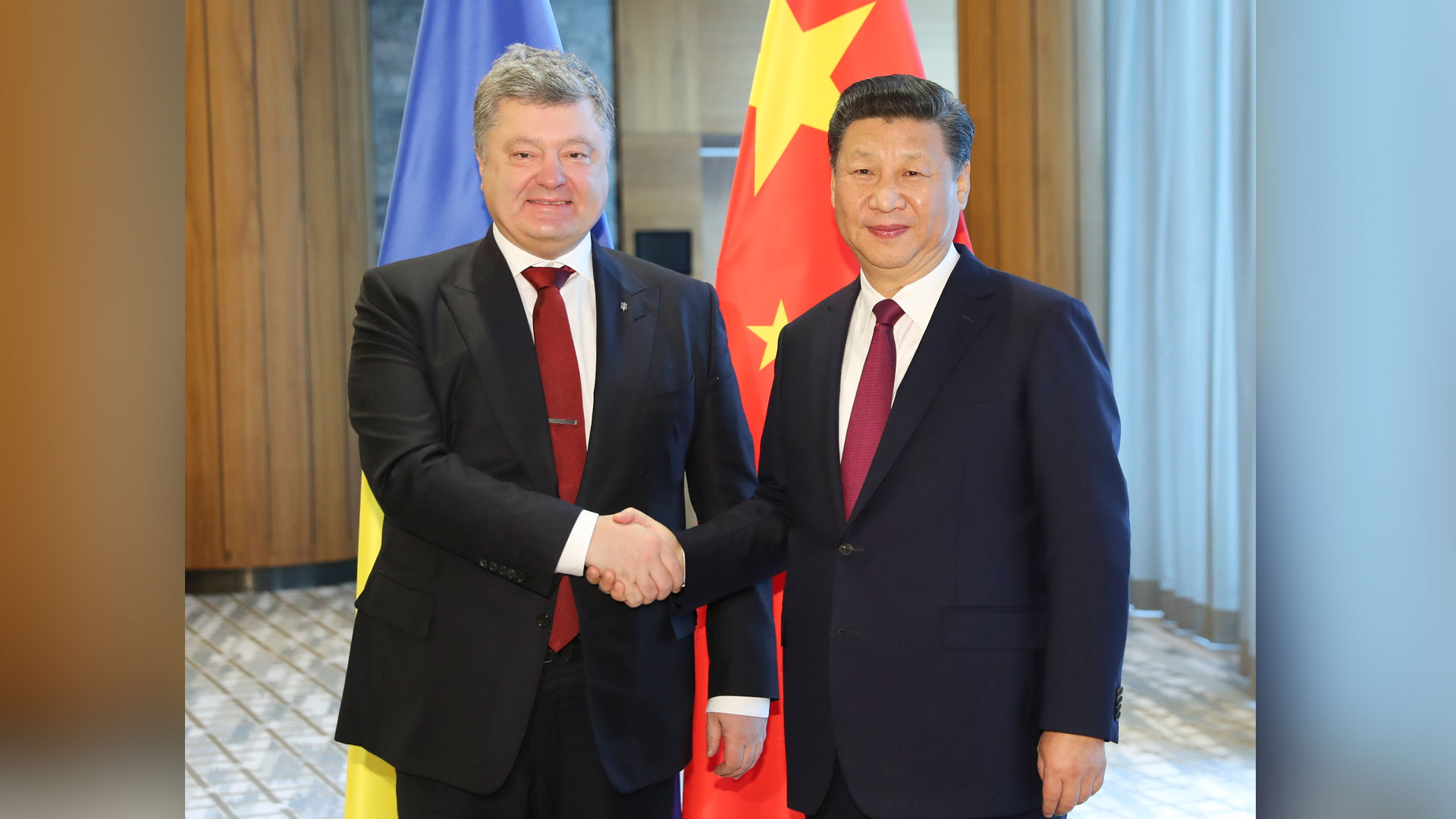 1月17日,國(guó)家主席習(xí)近平在瑞士達(dá)沃斯會(huì)見(jiàn)烏克蘭總統(tǒng)波羅申科。新華社記者 丁林 攝2017-01-18