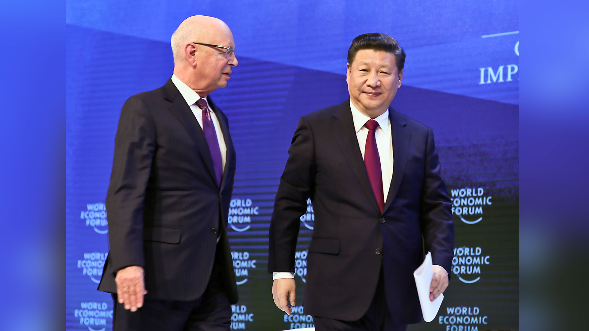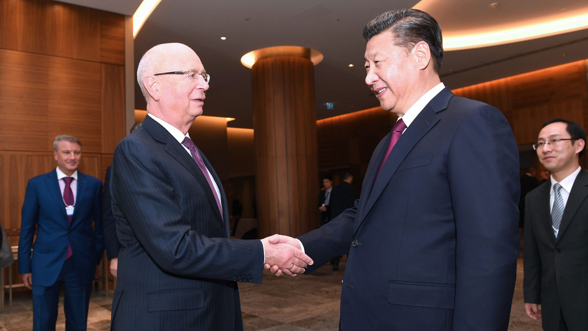 1月17日,國(guó)家主席習(xí)近平在瑞士達(dá)沃斯國(guó)際會(huì)議中心出席世界經(jīng)濟(jì)論壇2017年年會(huì)開(kāi)幕式,并發(fā)表題為《共擔(dān)時(shí)代責(zé)任共促全球發(fā)展》的主旨演講。這是習(xí)近平同世界經(jīng)濟(jì)論壇創(chuàng)始人兼執(zhí)行主席施瓦布在一起。 新華社記者 蘭紅光 攝2017-01-18