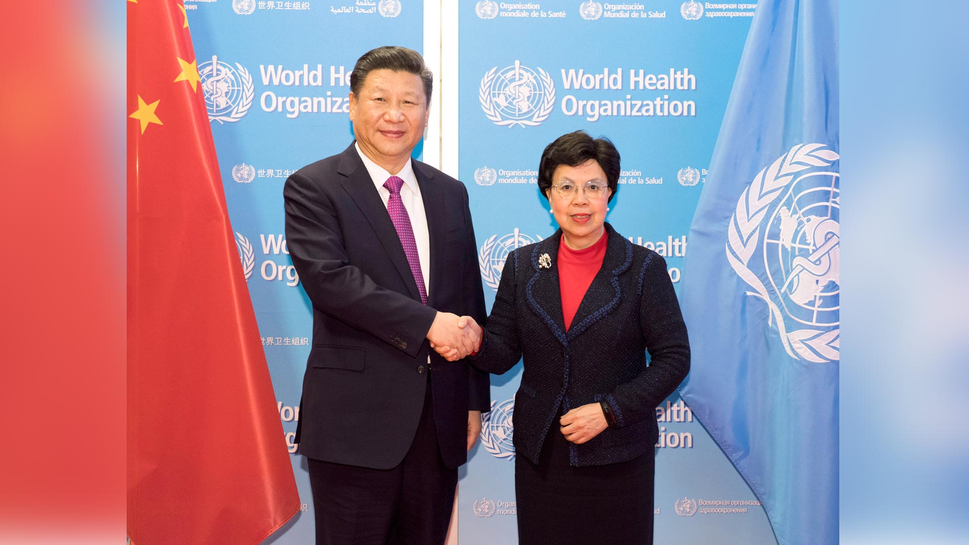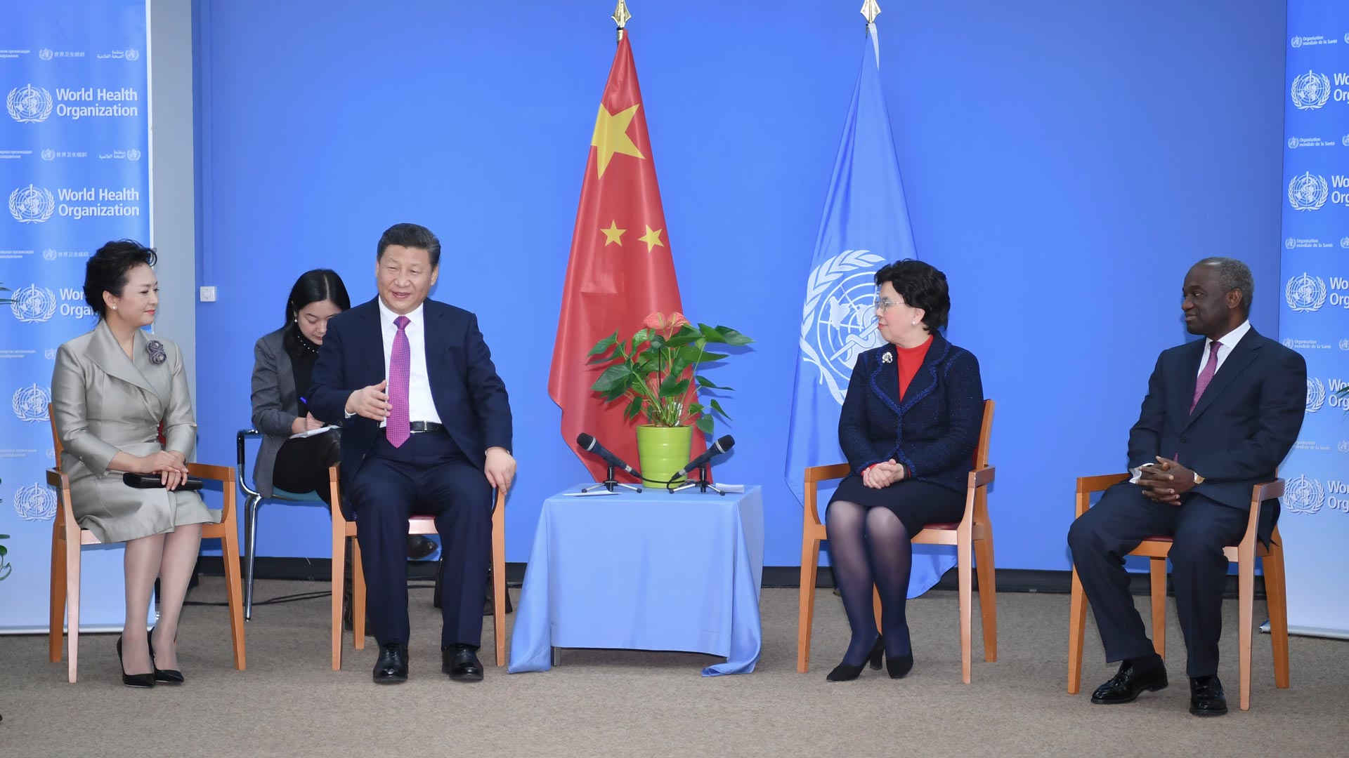 1月18日,國(guó)家主席習(xí)近平在瑞士日內(nèi)瓦訪問(wèn)世界衛(wèi)生組織并會(huì)見(jiàn)陳馮富珍總干事。 新華社記者 吳曉凌 攝2017-01-19