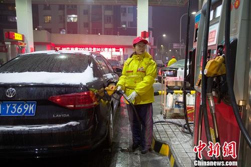 資料圖:加油站工作人員給車(chē)輛加油。中新社記者 張?jiān)?攝
