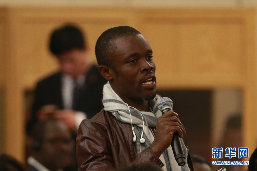 3月11日,十二屆全國(guó)人大五次會(huì)議新聞中心舉行記者會(huì),主題是“改革開(kāi)放調(diào)結(jié)構(gòu) 創(chuàng)新驅(qū)動(dòng)促發(fā)展”,商務(wù)部部長(zhǎng)鐘山、副部長(zhǎng)王受文、副部長(zhǎng)錢(qián)克明出席并回答中外記者的提問(wèn)。圖為利比里亞記者提問(wèn)。 新華網(wǎng)/中國(guó)政府網(wǎng) 傅義洲 攝